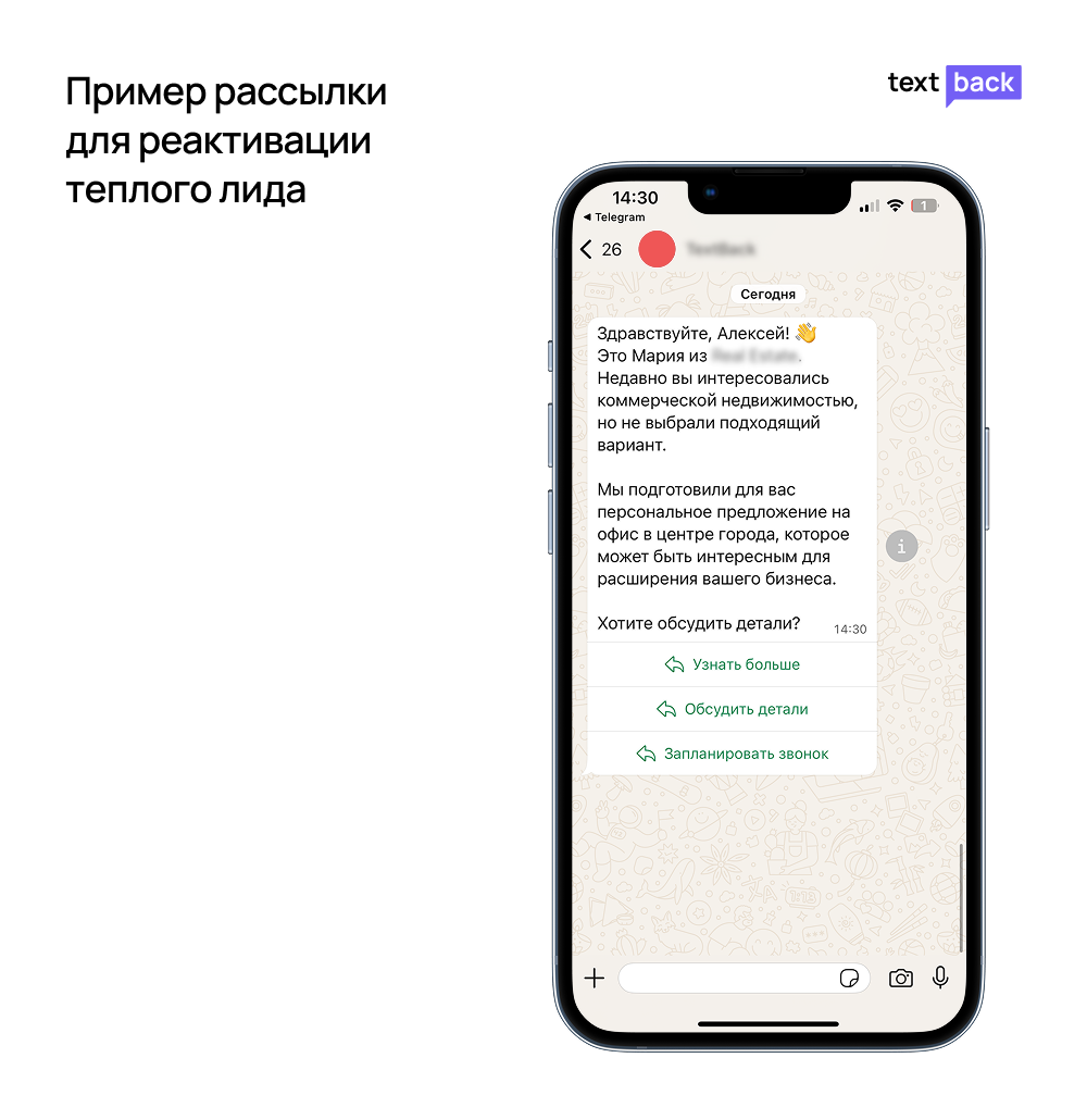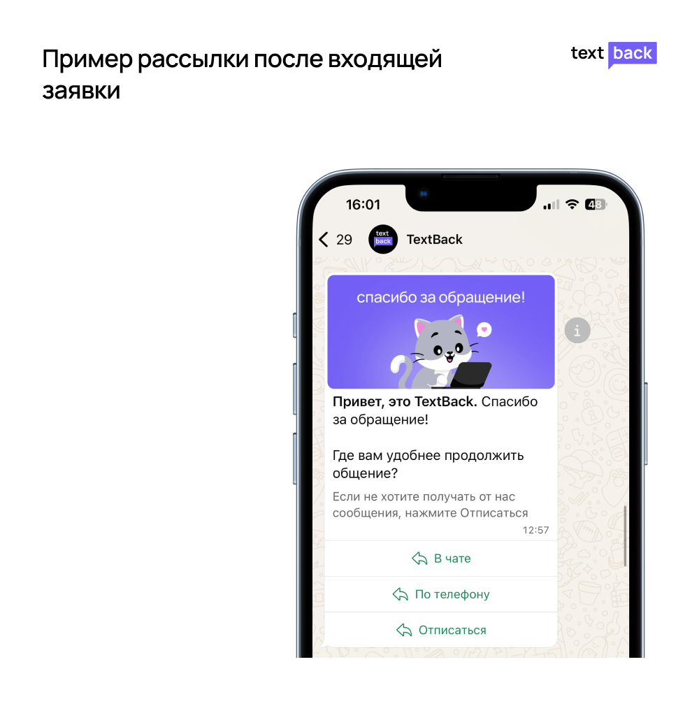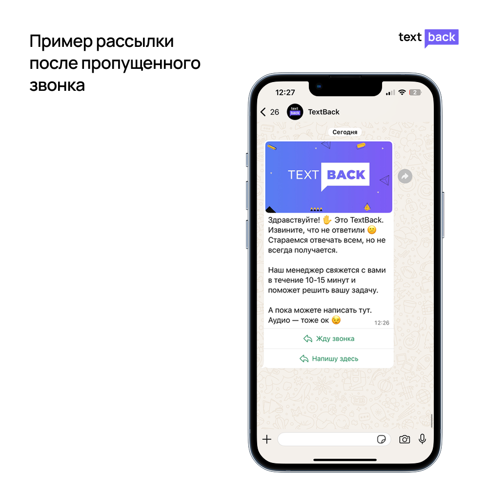 Хотите, чтобы ваши менеджеры тратили меньше времени на дозвоны и больше — на продажи? Попробуйте TextBack: автоматизация сообщений, интеграция с CRM и реальные кейсы роста продаж.