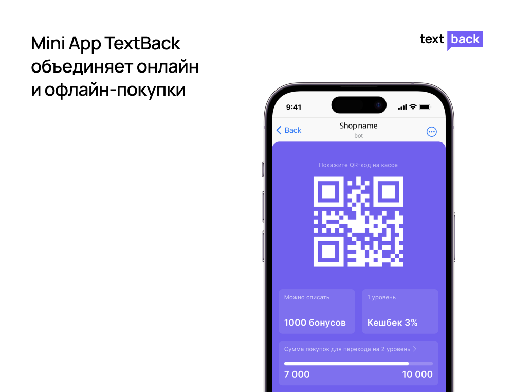 Mini App TextBack помогает объединить онлайн и офлайн в одном окне Telegram. Клиенту не нужно переключаться между сайтом, картой магазина и приложением: все заказы, бонусы, уровни программы и условия участия доступны в едином личном кабинете.