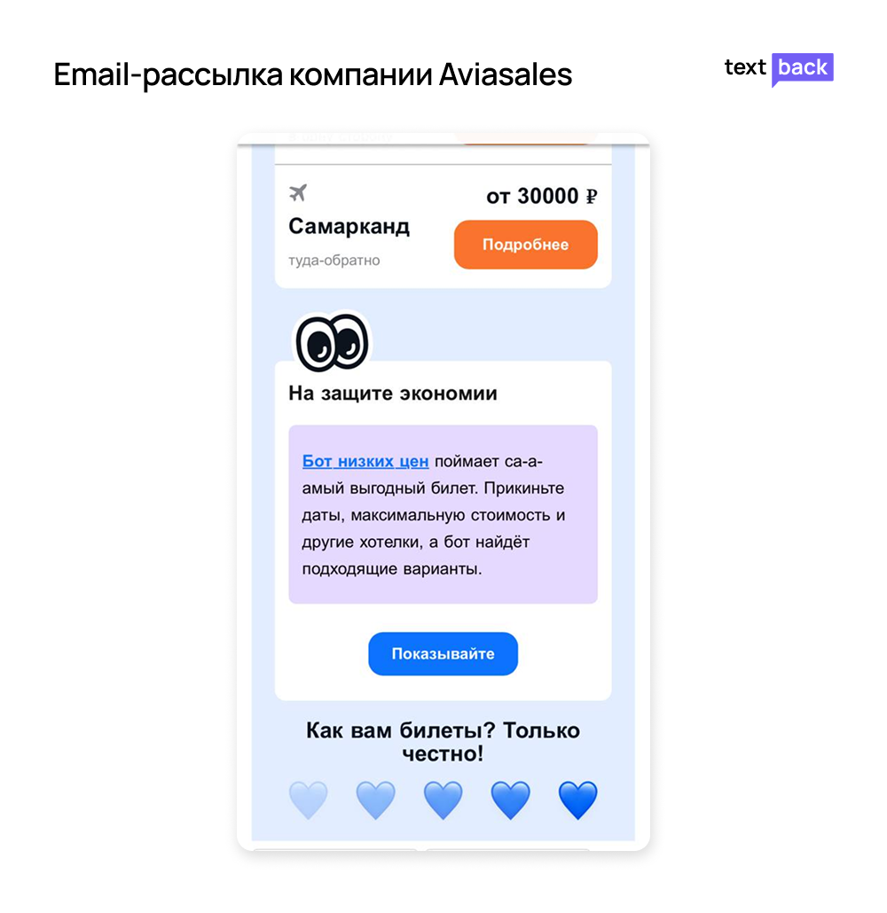 Aviasales зовет в своего Telegram-бота для подбора лучших вариантов перелетов.