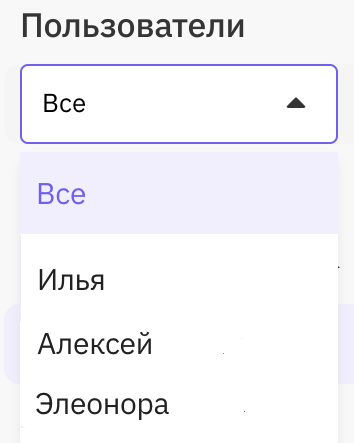 - Список пользователей: отображаются все сотрудники, добавленные в аккаунт.