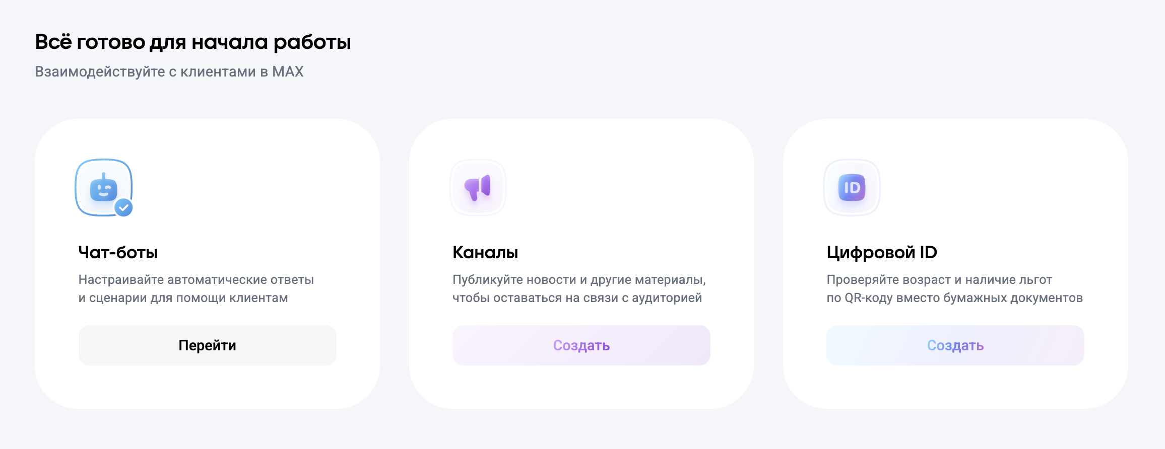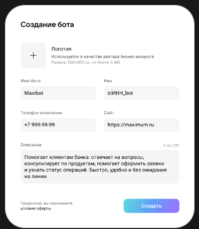 После того как вы зарегистрировали профиль компании и прошли верификацию, можно создавать чат-бота в MAX. Для этого: