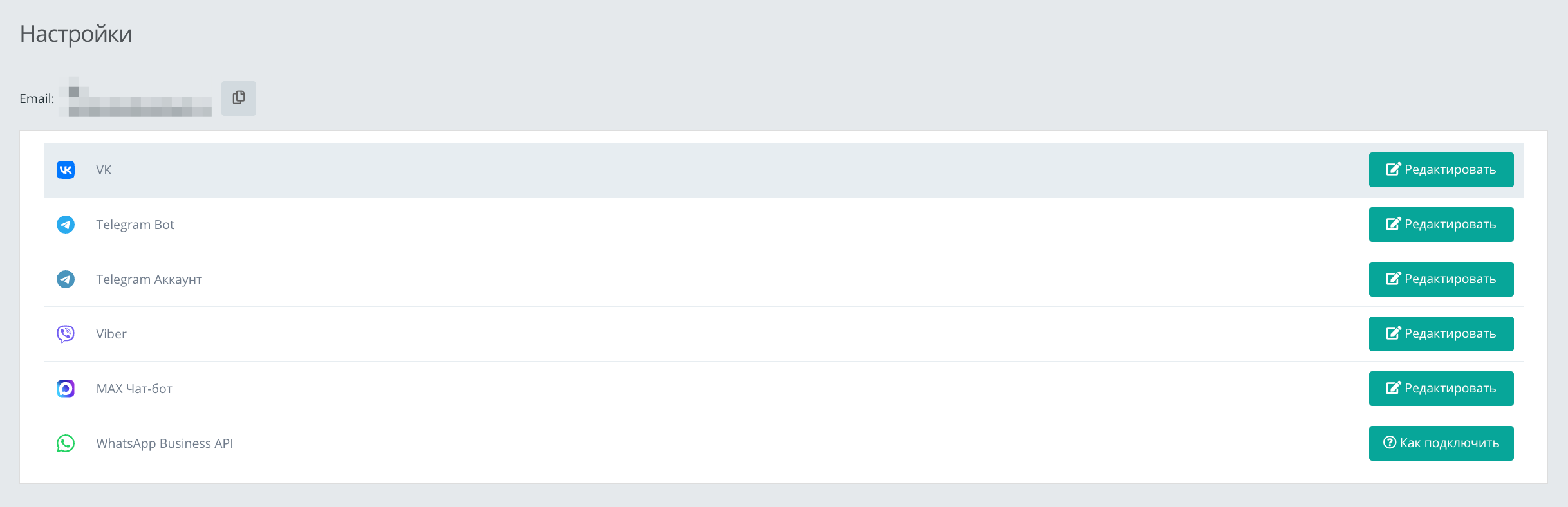 - В личном кабинете TextBack откройте «Настройки» → «Редактировать» → «Подключить канал».