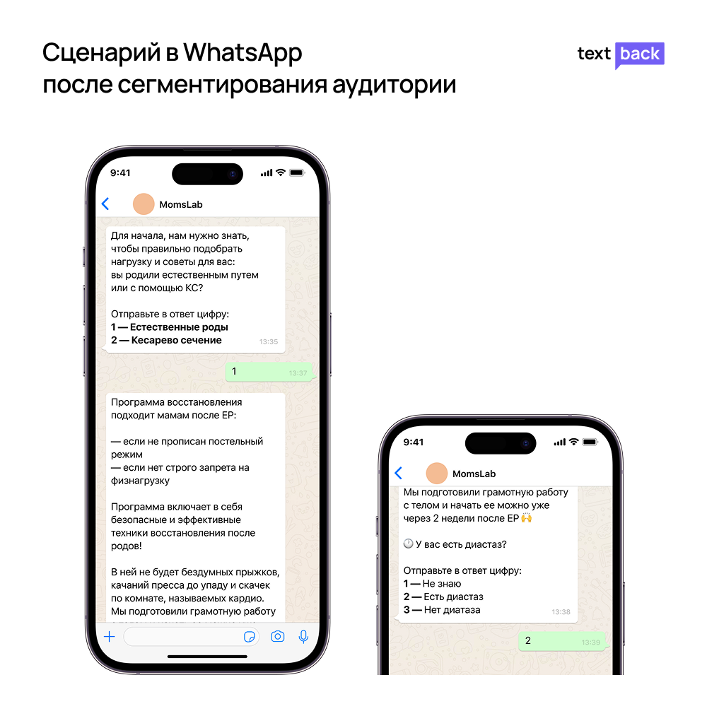 Автоматизация всего пути клиента через чат-бота WhatsApp в TextBack удерживает внимание участников, повышает доходимость и конверсию, а менеджеры экономят время на ручной коммуникации.