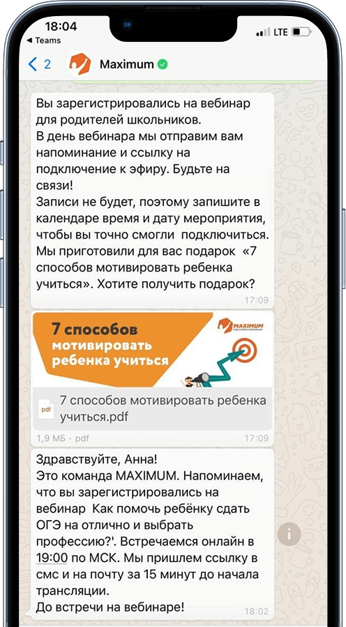 Стройте любые сценарии от напоминаний о вебинаре до дожима и апселлов