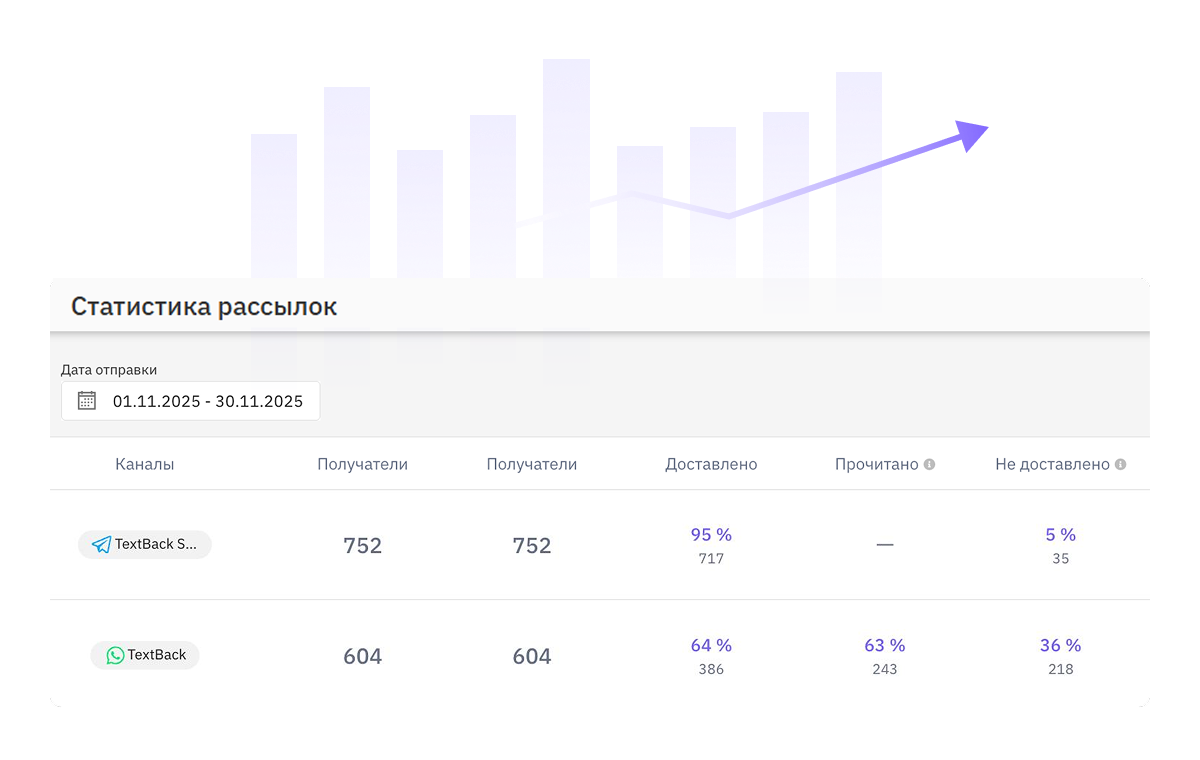 Анализируйте ключевые показатели: доставки, клики, просмотры и ответы. Принимайте решения на основе цифр