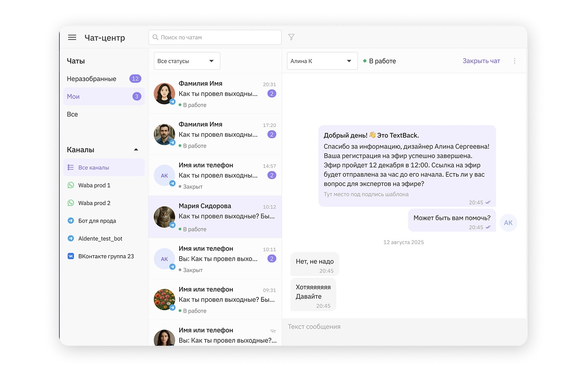TextBack — платформа автоматизации продаж и маркетинга в мессенджерах