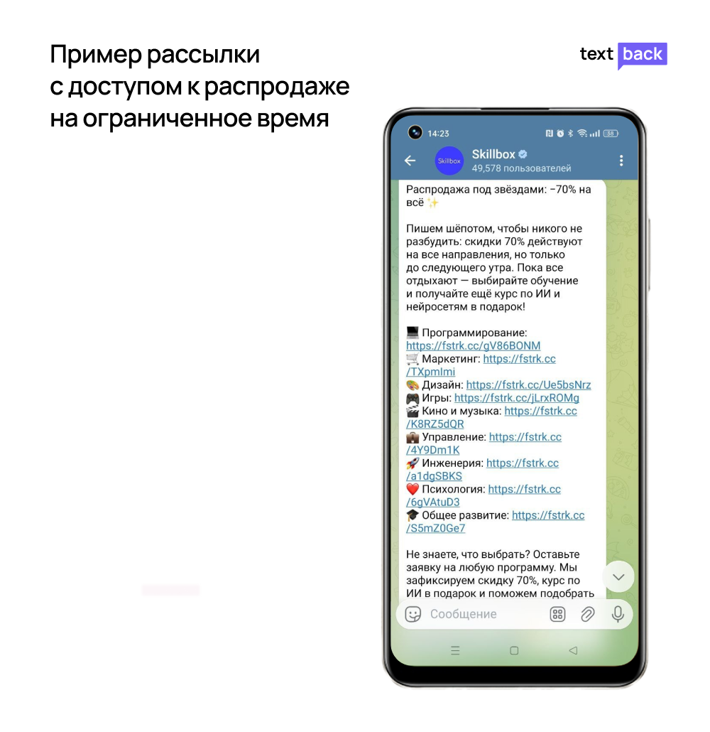 С помощью TextBack вы можете строить полноценную стратегию в Telegram и WhatsApp. Ниже — примеры постов, которые стоит попробовать.