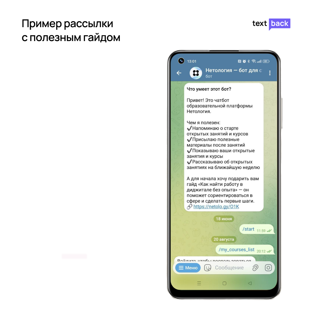 Рассылки в мессенджерах — это инструмент, который может продавать, вовлекать и удерживать клиентов. При этом у вас всего несколько секунд, чтобы заинтересовать человека. Поэтому текст должен быть коротким, цепким и полезным.