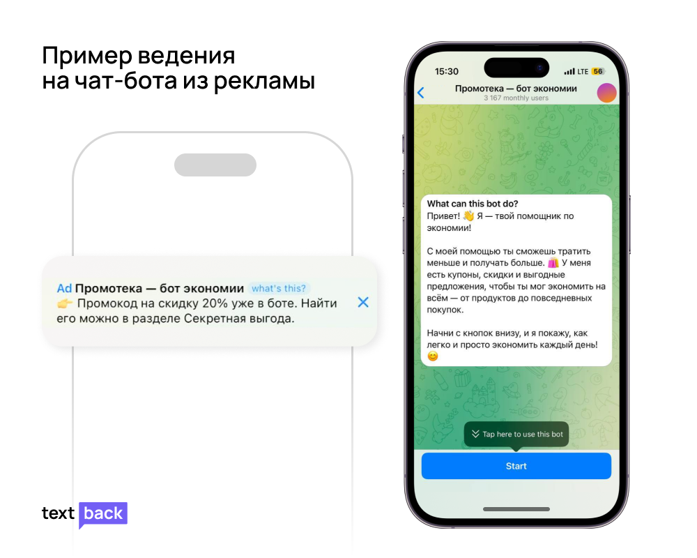 Нужна помощь в настройке? Мы на связи! Если у вас нет времени или ресурсов для настройки Telegram-бота и переноса коммуникаций, команда TextBack готова помочь. Напишите нам, чтобы обсудить ваш проект и найти лучшее решение.